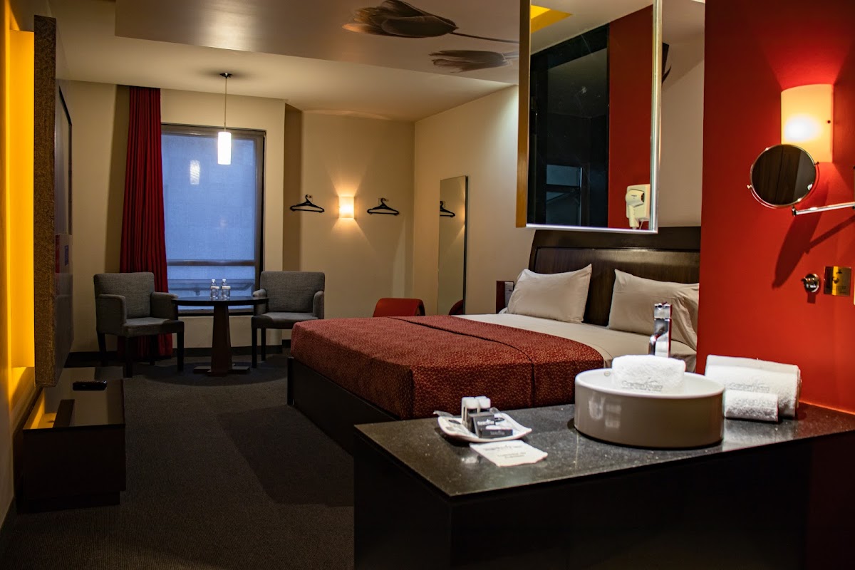 Got close to Mexico City late one night and didn't want to drive in traffic in the dark. Our first time here. Found this little Gem by chance. Didn't realize that it was a "love" hotel until we were in. The staff was very very helpful, using Google translate we managed to communicate and laugh. The rooms were the cleanest rooms we had on our 5 week trip and the food here is great. Just make sure to order off of menue one as the second menue you can't eat. Lol